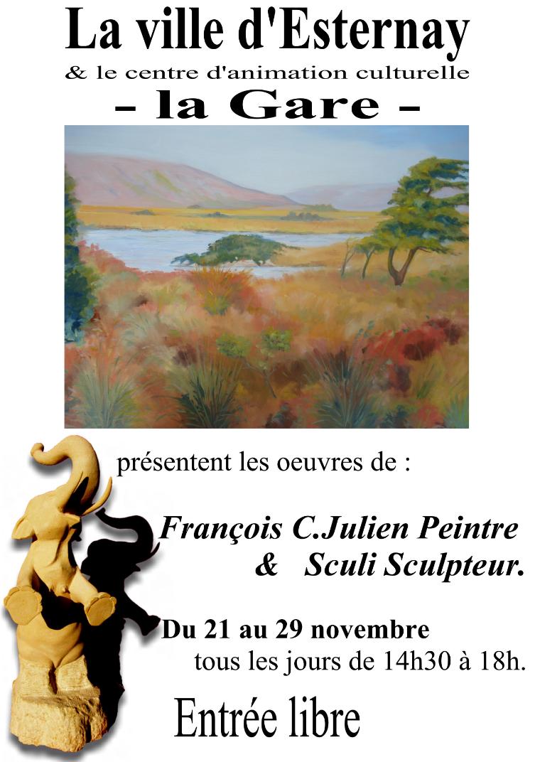 Esternay et le centre d'animation culturelle la Gare présente les Oeuvres de : Francois C.julien Peintre et Sculi Sculpteur.