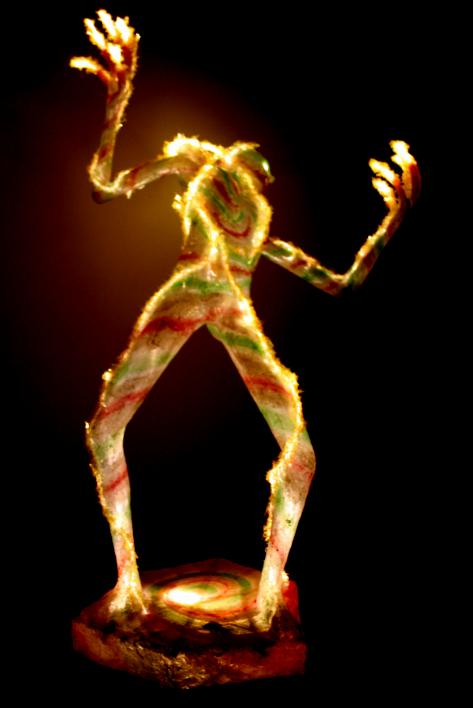 Lys-transparent harpiks skulptur repræsenterer sjælen af kamp, fremstilling udelukkende Fluxli.