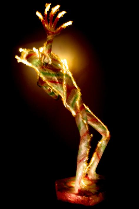 Ljus-transparent harts skulptur som representerar själen i strid, tillverkar uteslutande Fluxli.