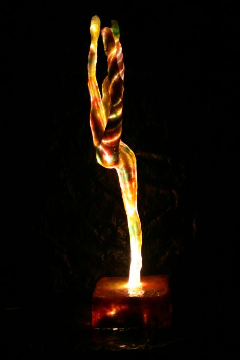 Escultura de resina transparente a la luz que representa el alma de la pasión, fabricar exclusivamente Fluxli.