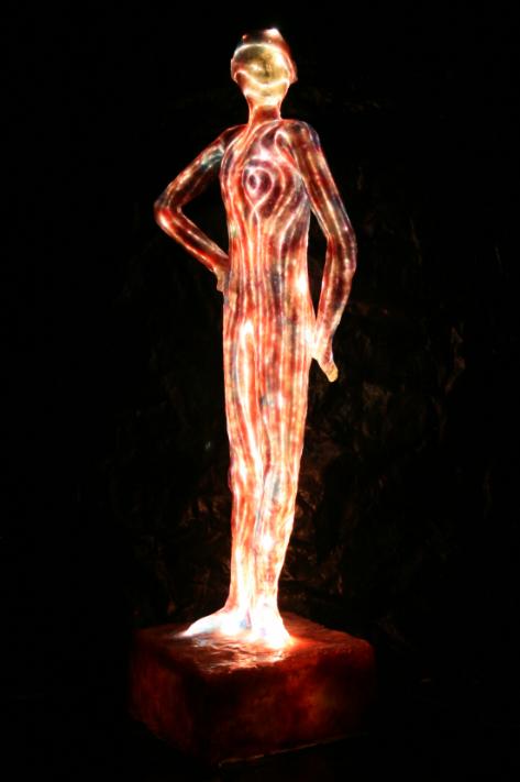 Sculpture en résine transparante lumineuse representant l'âme de la séduction, fabriquer exclusivement par Fluxli.