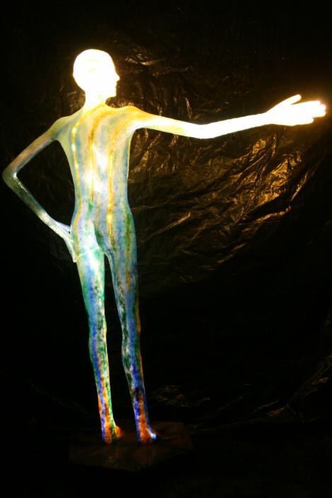 Ljus-transparent harts skulptur som representerar själen ger vika, tillverkar uteslutande Fluxli.