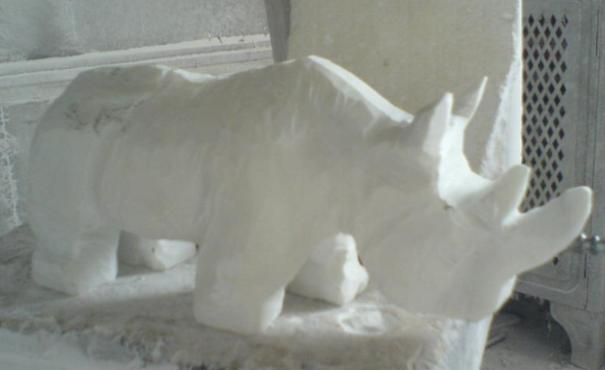 Le rhinocéros sort doucement de son bloque de marbre, petite information sur le marbre il vient du coteau en face de la fameuse carriere de Michael.