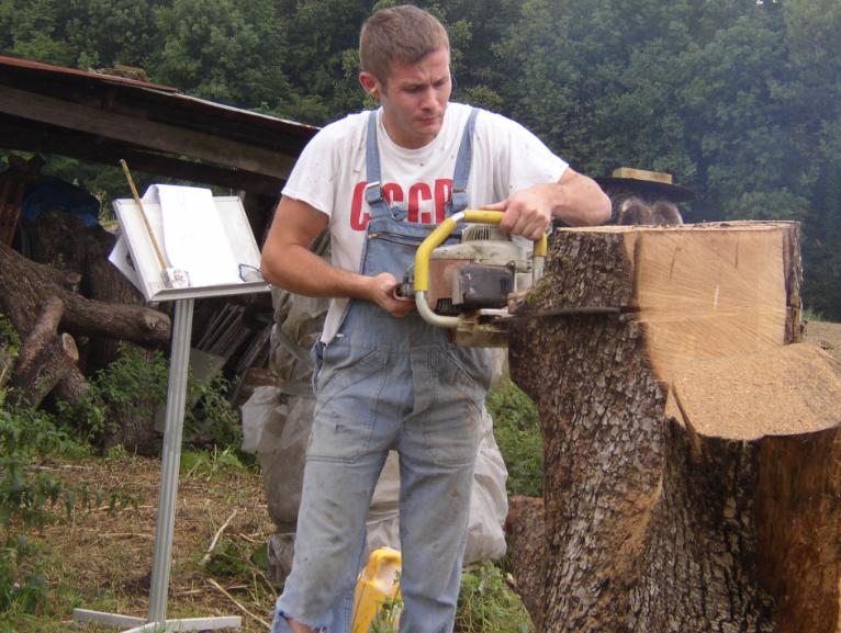Les premiers moments avec le decoupage à la tronsonneuse