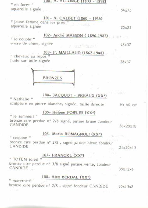 Vente au enchere a Provins en 1996 organisé par M Ludovic Saulnier expert en tableau et oeuvre moderne.
