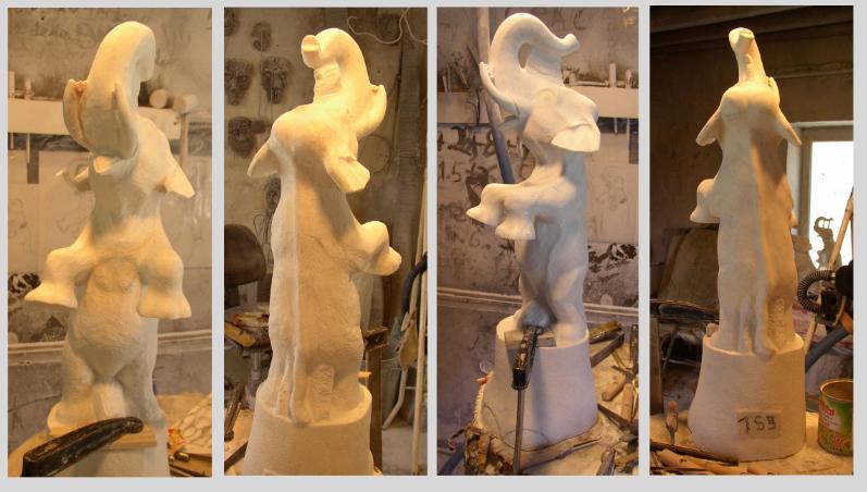 Création de l'éléphant debout en marbre de carrare.