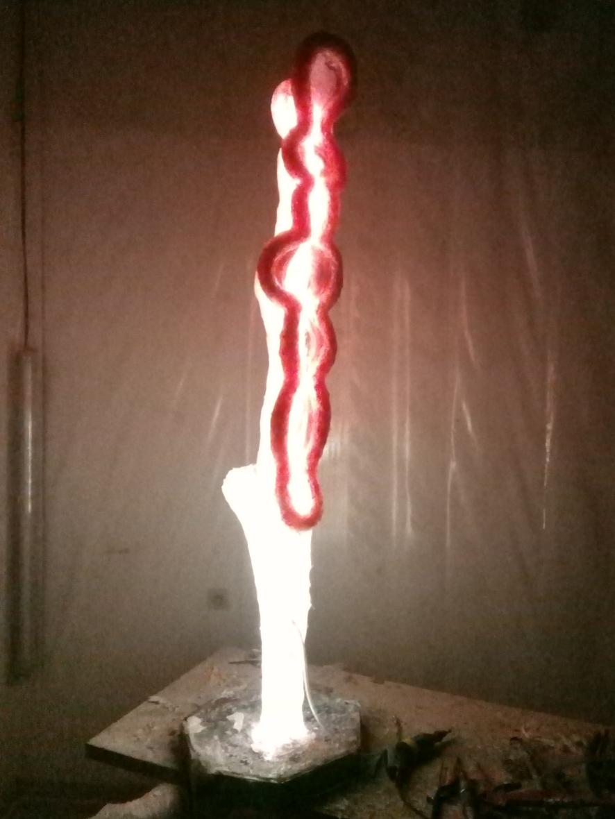 Ce qui rend la sculpture de Sculi avec deux visons extérieure et intérieure, puis encore des dimensions supplémentaires repliées sur elles mêmes dans le sciage la théorie des cordes en incluant la philosophie, l'énergie, le temps, la nitescence...