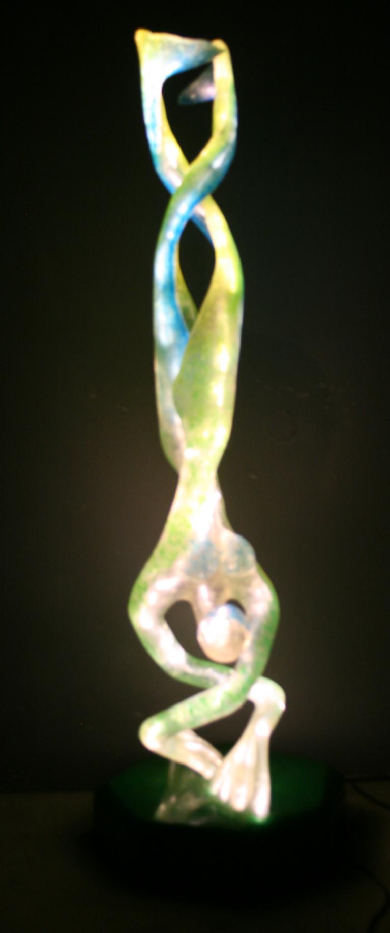 Sur la trace de l'un de ses maîtres l'illustre : - Léonard de Vinci- qui trouvait la peinture supérieure à la sculpture car nous pouvons y travailler la lumière. Sculi va plus loin en créant la sculpture du troisième millénaire 500 ans après la renaissance et la création de la perspective, l'art s’imprègne de la fibre optique.