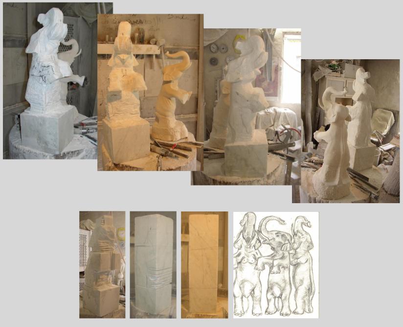Création de l'éléphant debout en marbre de carrare.