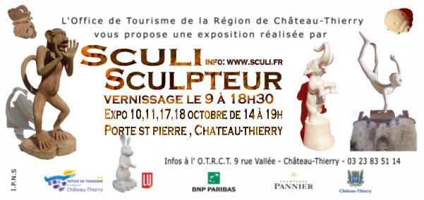 Sculpteur autodidacte, Sculi travaille la pierre, le bois, la résine et le métal autour d'une thématique centrale: l'équilibre